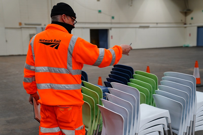 Between 18 and 22 January, workers from Network Rail volunteered their time to unload around 100 pallets of equipment from articulated lorries and set it up inside the main building at Westpoint Exeter.