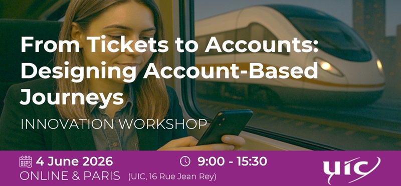 The next workshop is titled “From tickets to accounts: designing account-based journeys” will take place on 4 June 2026, from 9:00 to 15:30 at UIC in Paris. The event will be held in hybrid form, allowing participants to attend either in-person or online.