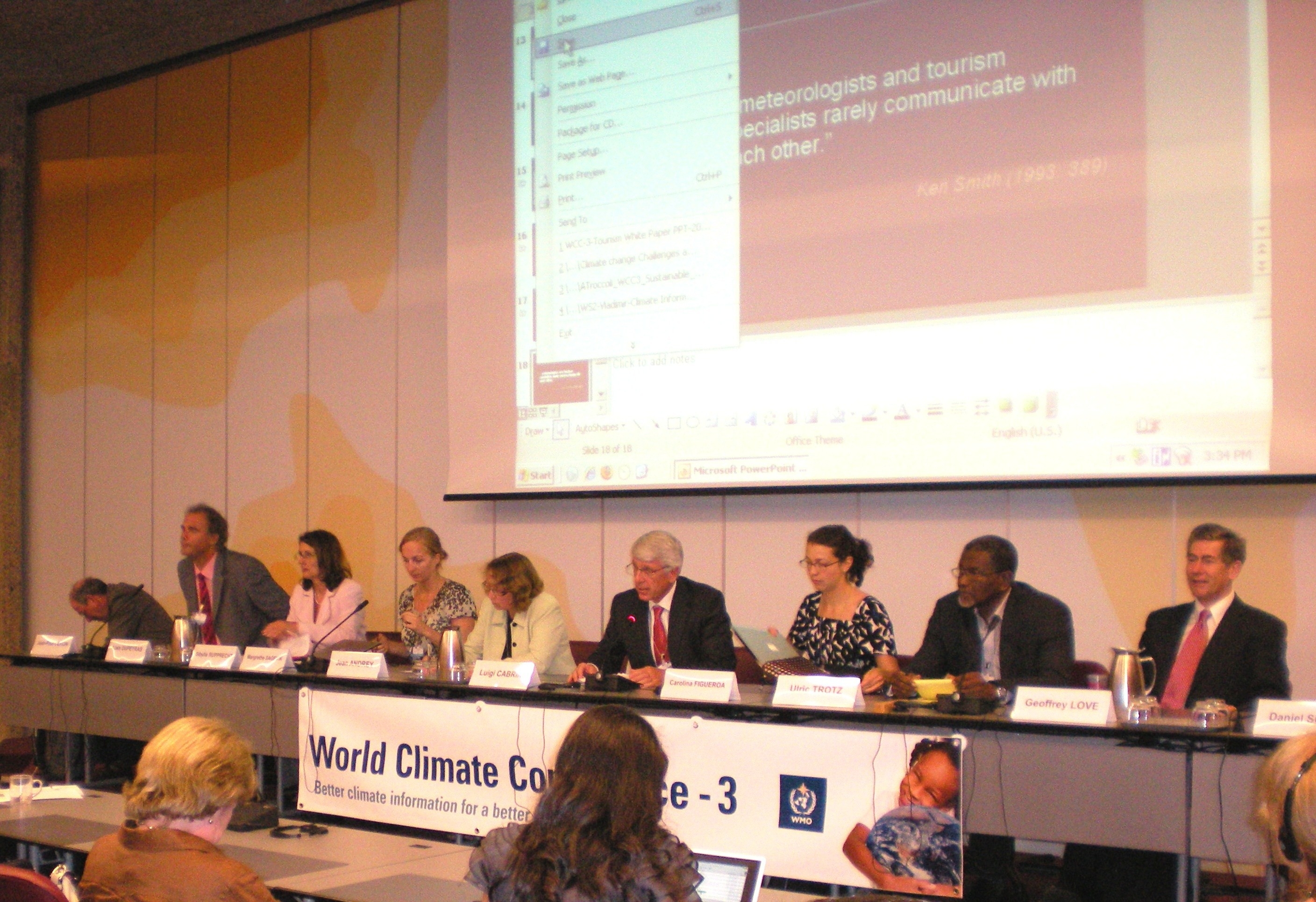 The “White Paper on Weather and Climate Information for Tourism” was written and presented by Daniel Scott, Chair in Global Change and Tourism, University of Waterloo and the ‘White Paper on Climate information on Transport” was written and presented by Geoffrey Love, World Meteorological Organisation (WMO).