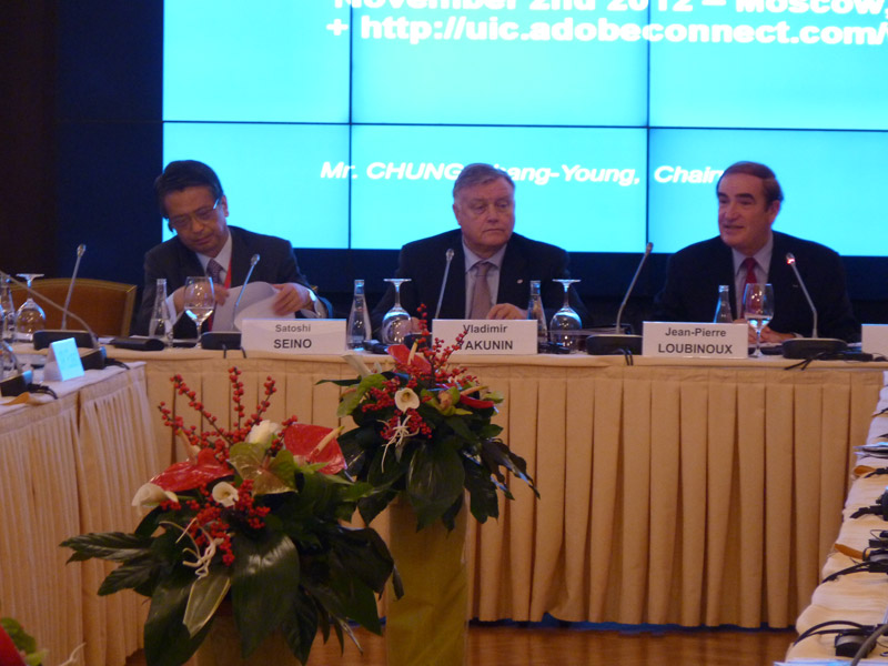 The 14th UIC Regional Assembly for Asia and Oceania took place on 2 November 2012 in Moscow, Russian Federation, at the invitation of JSC RZD, which was celebrating 175 years of operations. After a detailed review of the projects under way and undertaken by the region’s members themselves, the Assembly reaffirmed the importance of all its members being involved and having a stake in jointly planned and financed operations. To that end, all members were officially invited to participate, so that they would play a proper part in future seminars and studies, as well as in sending secondees to UIC headquarters in Paris. These last should act as intermediaries for members to express their needs to UIC’s forums and technical departments. They will also each play the role of technical advisor in their specific area of expertise and in relation to knowledge of their region.